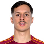 Niccolò Pisilli (Roma) is shown the yellow card for a bad foul.