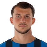 Berat Djimsiti (Atalanta) is shown the yellow card for a bad foul.