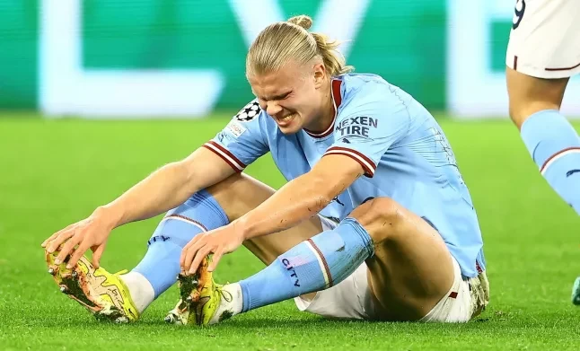 Apes betul Erling Haaland. Penyerang Manchester City itu mendapat cedera setelah bikin gol dan membawa timnya mengalahkan Bournemouth.