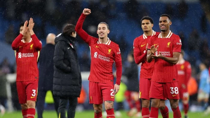 Bertanding di Stadion Etihad, Minggu (23/2/2025) malam WIB, gol-gol kemenangan Liverpool dicetak Mohamed Salah dan Dominik Szoboszlai di babak pertama. Hasil ini membuat skuad asuhan Arne Slot duduk di puncak dengan mengumpulkan 64 poin dari 27 laga.